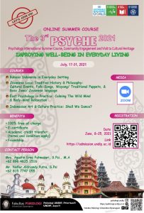 Faculty of Psychology, Universitas Diponegoro proudly presents the 3rd Online Summer Course PSYCHE 2021 The