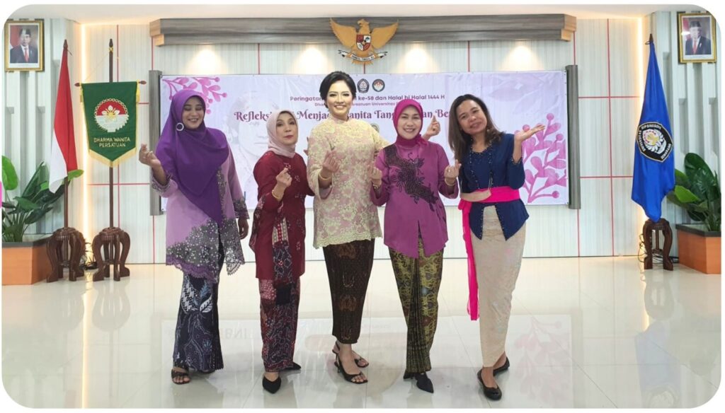 Faculty of Psychology Undip hosted the 58th Kartini Day and Halal Bihalal in the event of Eid al-Fitr 1444 H organized by Dharma Wanita Persatuan Universitas Diponegoro. These two celebrations were held in the same day because of the close proximity of the two events. The purpose of this activity is to provide a place to maintain friendship by taking a special theme that emphasizes the role of women as nation building.