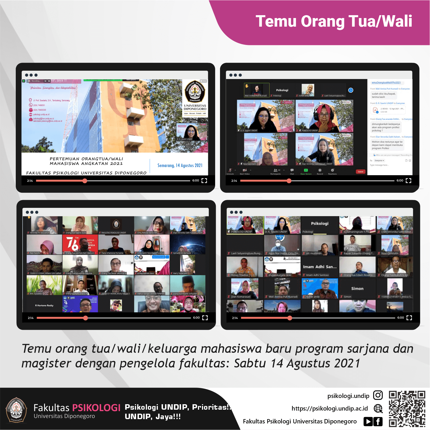 Rekaman kegiatan temu orang tua/wali/keluarga mahasiswa Fakultas Psikologi Universitas Diponegoro dapat diakses disini: